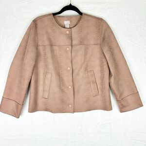 Chico's Faux Scuba Suede Jacket Size 1 Medium 8/10 NWT Desert Tan