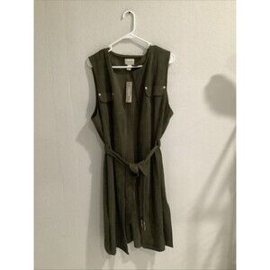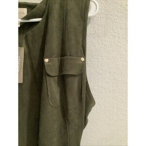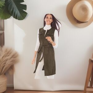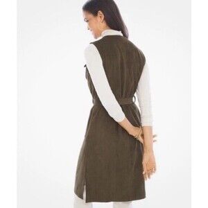 Chico's Faux Suede Longline Vest Ambered Olive Size 3 NWT