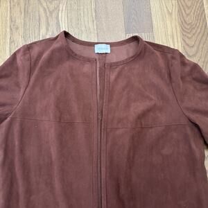Chicos Faux Suede Open Front Jacket SIZE XL Brown Zip Detail 3/4 Sleeve