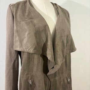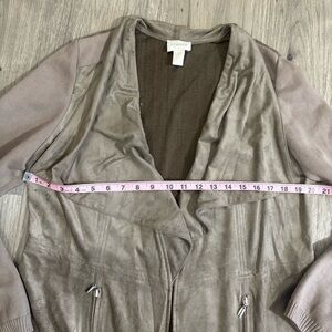 Chicos Faux Suede Open Front Waterfall Cardigan Jacket Women’s Sz 1 Brown Beige
