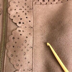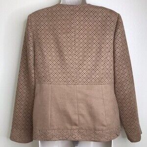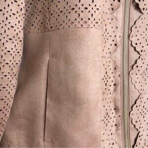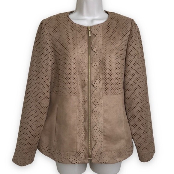 Chicos Faux Suede Perforated Laser Cut Zip Front Long Sleeve Camel Tan Jacket S