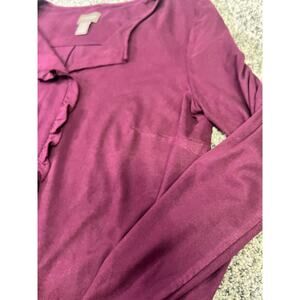 Chico’s Faux Suede Ruffle Front Button Front Blouse, Long Sleeve Women’s 0 (XS)