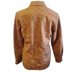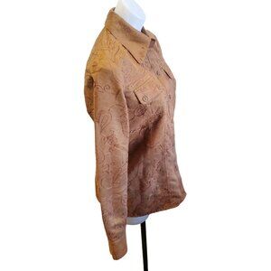 Chico's Faux Suede Western Embroidery Long Sleeve Paisley Shirt Boho Small