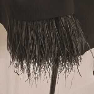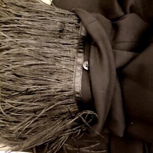 The new fashion staple for any occasion. Featuring a removable feather trim, front closure, and novelty button. Made in warm, cozy ponte fabric in time for the chilly weather.