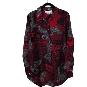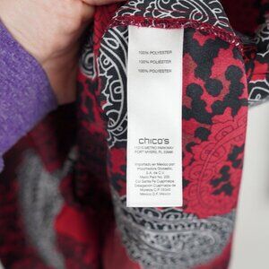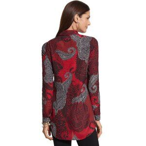 Chicos Festive Paisley Roxanne Top Button Down Long Sleeve Office Artsy S