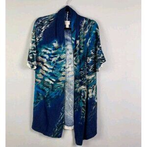 Chicos Fierce Blues Kandyce Cardigan Size 1 US Medium Short Sleeve Open Front