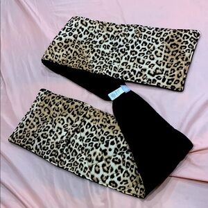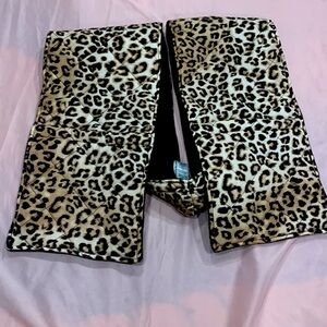 Stylish leopard print scarf with black fleece lining. Perfect for adding a wild touch to any outfit.