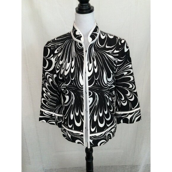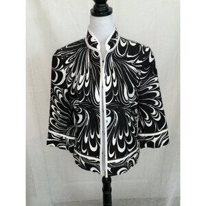 Chico's Floral Black/White Jacket Blazer size 1 Medium