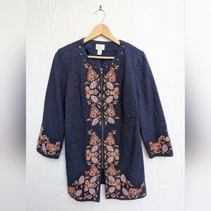 Chico's Floral Embroidered Jacket Navy Blue Full Zip Women's Size 1 (Small US 8)