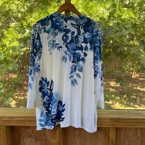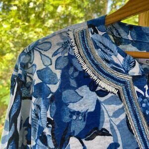 Chico's Floral Embroidered Linen Tunic Top White/Blue Size 4 (XXL). NEW