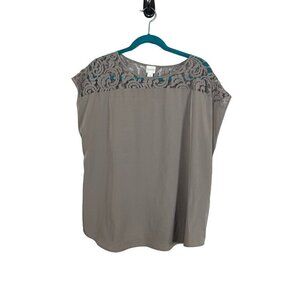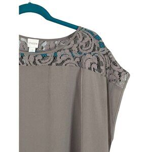 Chicos Floral Lace Top XL Taupe Neutral Minimalist Workwear Boho Western Retro