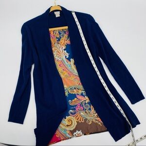 Chico’s Floral Paisley Long Sleeve Blue Cardigan