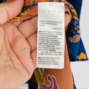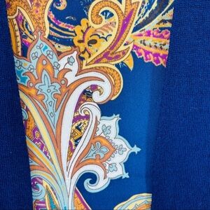 Soft & comfortably Pretty !! Chico’s Floral Paisley Long Sleeve Blue Cardigan is perfect! 2 side slip pockets and nice length with soft sleeves. Back of cardigan is in a silky colorful bright print that is eye catching gorgeous! Reflect for travel - packable.