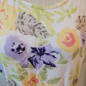 Chico's Floral Paradise Side-Tie Tee White Size 2/12