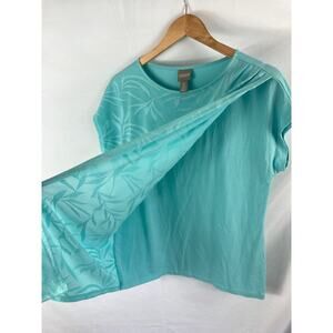 Elevate your wardrobe with this vibrant Chico's floral print shirt! The turquoise blue hue and layered front design make it a standout piece. This short sleeve shirt is in excellent condition and ready to add a pop of color to your day!