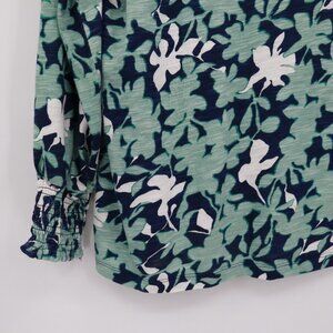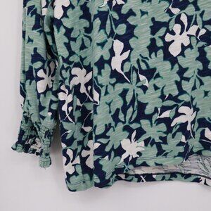 Chico's Floral Smocked Cuff Tee Womens XL Blue Bloomcore Peasant Boho Hippie