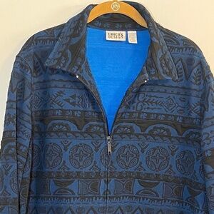 Chicos Floral Striped Jacket 16 Blue Western Boho Neutral Old Money Preppy 80s