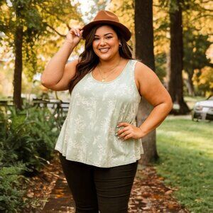 Chico's Floral Tank Top Basic Knit Blouse The Touch of Cool Polished Pullover