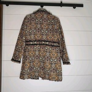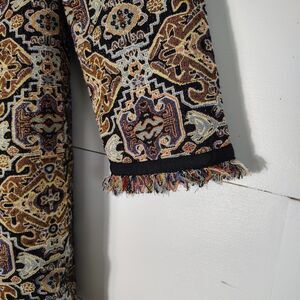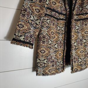 Chicos Floral Tapestry Duster Jacket With Fringe Accents Size 1 (Medium)