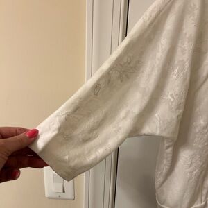 Chico's blouse with floral texture. Soft white fabric. Elegant and versatile. In excellent condition, Chico’s size 2.