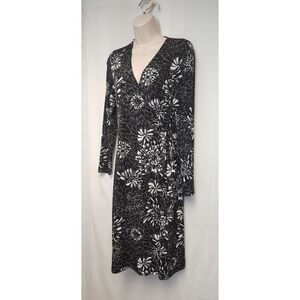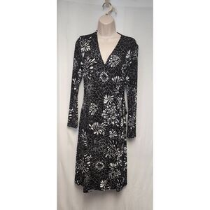 Chicos Floral Wrap Midi Dress Size 0/ US Small Black & White