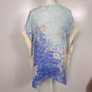 Linen poncho, styled in a gorgeous floral print with flowy elegance. Sheer fabric. Excellent condition