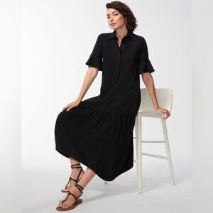 This A-line dress is made of lightweight fabric and features a fun flounce sleeves and a flattering collar