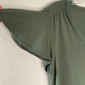 Chico’s Flutter Sleeve V-neck Top Ruched Olive Green Women’s Size 12 (Chico’s 2)
