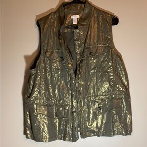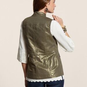 Chicos size 2 Large Foiled Linen Vest Jacket Gold