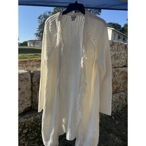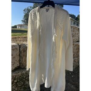 Chico's Fringe Front Emily Cardigan Sweater Ecru Ivory 3 = XL 16/18 NWT