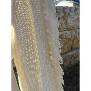 The Chico's Fringe Front Emily Cardigan Sweater in Ecru Ivory is a stylish and classic piece for women in size XL. Made from a comfortable cotton blend material, this medium knit sweater features a trendy fringe accent that adds a touch of elegance to the design. Perfect for everyday wear or special occasions, this cardigan is a versatile addition to any wardrobe, offering a timeless look with a modern twist.