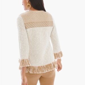Chico's Fringe Poppy Cardigan Tan & Gold Glitter Jacket Size 1 (US M)