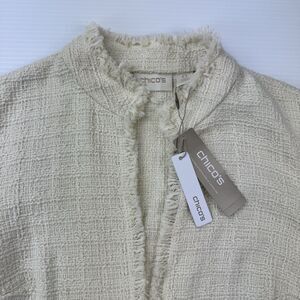 Chico’s Fringe Tweed Jacket Cream Open Front Blazer Women’s Size 0 (S) NWT $159