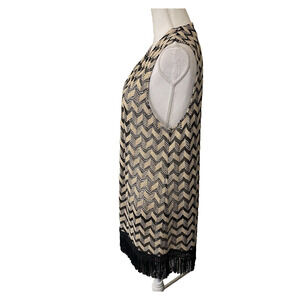 Chicos Fringe Vest Womens Sz 2 US 12 Black Brown Metallic Chevron Open Boho