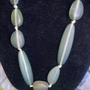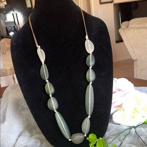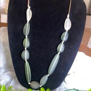 This elegant necklace features beautiful green and silver tones, perfect for adding a touch of sophistication to any outfit.
