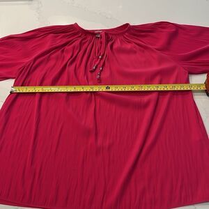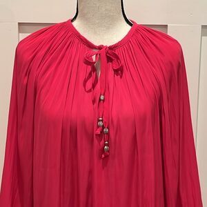Chico's Fuchsia Colored LS Top, Chico's Size 2 (12). Top features tie at neckline with keyhole opening and elastic cuffs at the sleeves. Top is in EUC with no rips, tears, stains or holes. Smoke and pet free home (2334*)