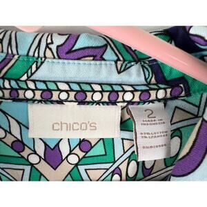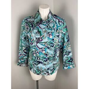 Chico's Funky Abstract Artsy Pattern Button Up Jacket Large