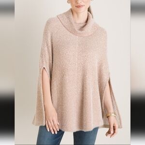 Add a cozy layer of warmth to your look with this soft, fuzzy cape. Perfect for the holidays, it's made with metallic elements for a bit of shine to brighten days and evenings alike.
