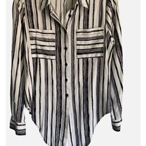 Chicos Gaucho Two Piece Jumpsuit 1.5 10 Navy Blue White Stripe Wide Leg Blouse