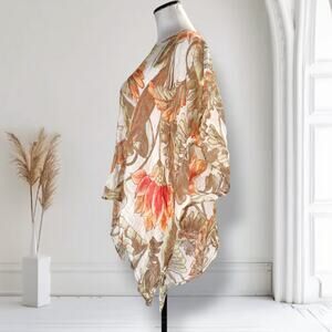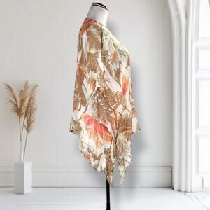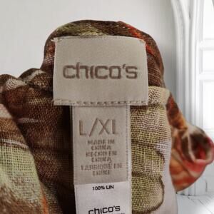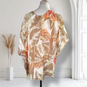 Chicos Gauzy Linen Poncho Size L/XL Orange Brown Floral Print Boho