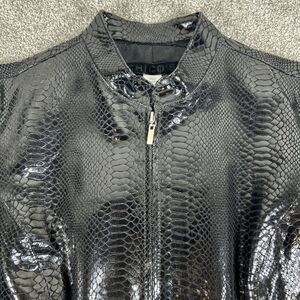 Chico's Genuine Leather Black Designer Fashion Jacket Size 2 Snakeskin Print