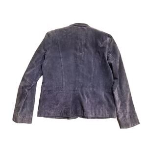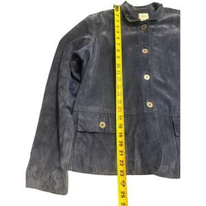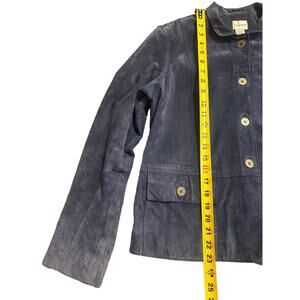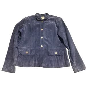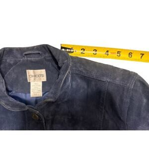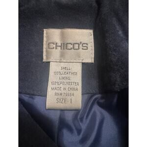 Chico's Genuine Leather Jacket Dark Blue Size 1 With Designer Metal buttons