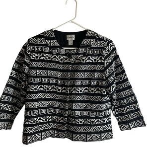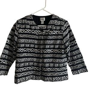 Chico’s Geometric Black & White Aztec Embroidered Tribal Jacket Size Size 1 Med