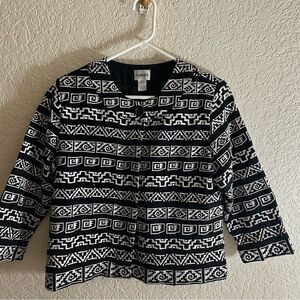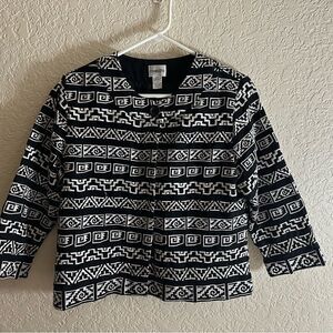 Chico’s Geometric Black & White Aztec Embroidered Tribal Jacket