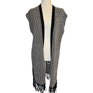 Chico's Geometric Fringe Sweater Vest Black Size 0 is size Small Bohemian