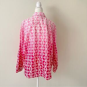 Chico’s Geometric Ombre Button Up Blouse Cotton Long Sleeve Top Size Large
