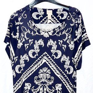 Chico's Geometric Print Navy and White Sheeth Dress