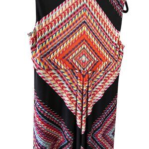 Chicos Geometric Print Sleeveless Maxi Dress 2 Draped Neckline Colorful Tribal