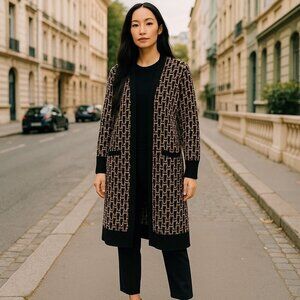 Chico's Geometric-Print Jacquard Cardigan Long Open-front Sweater.