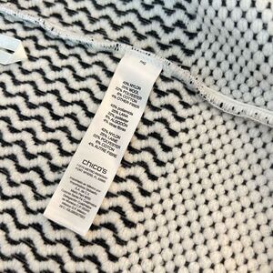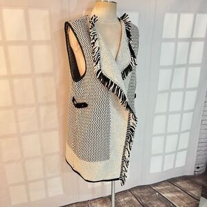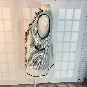 Chico's Gigi Black White Wool Blend Textured Knit Fringe Cardigan Vest Size 2